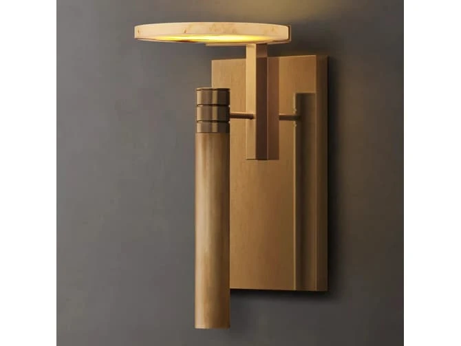 Melange Floating Disc – Alabaster and Brass floating disc wall light