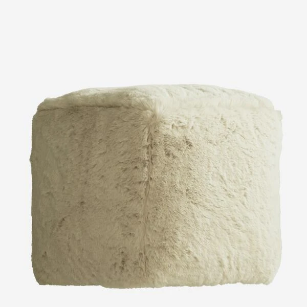 Square fluffy pouffe in ivory