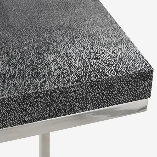 With sleek metallic legs and a gorgeous grey faux shagreen top