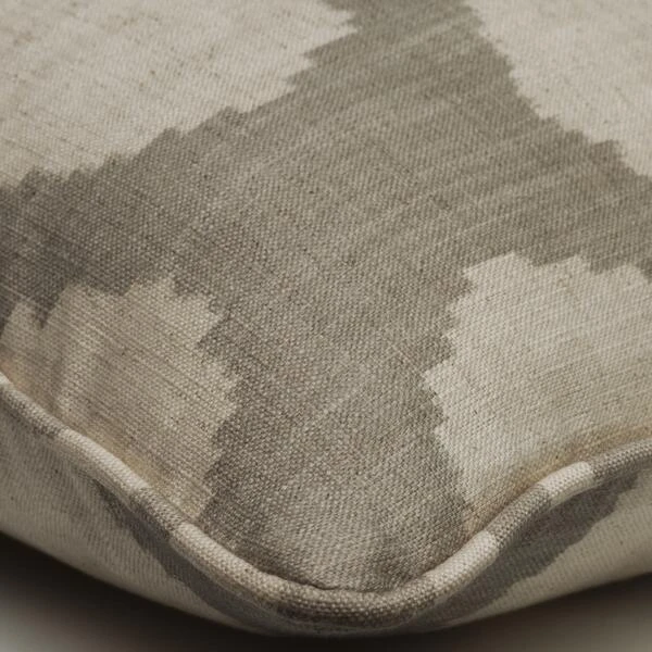 A luxurious cushion made from , a circular ikat spot design, which forms a loose