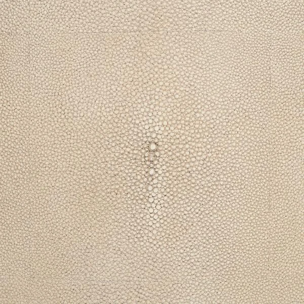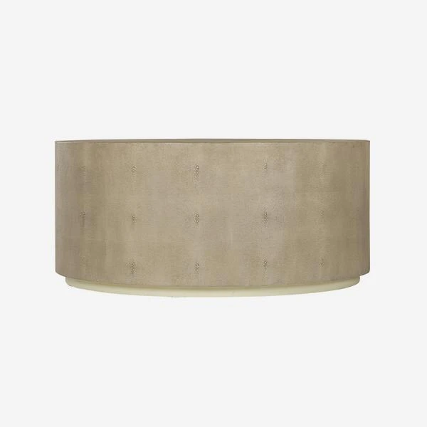 A circular coffee table in all-over ivory faux shagreen. Evoke