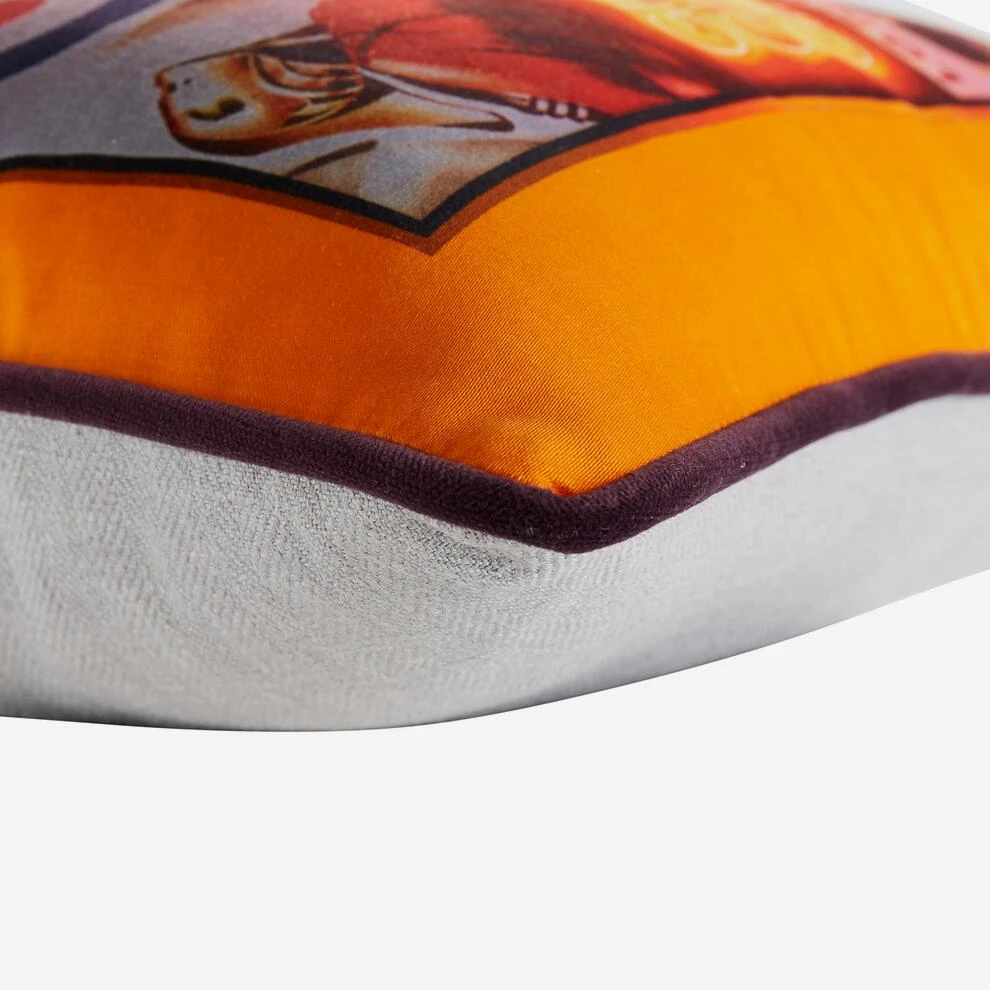 off with plum velvet piping. This cushion is the perfect splash of