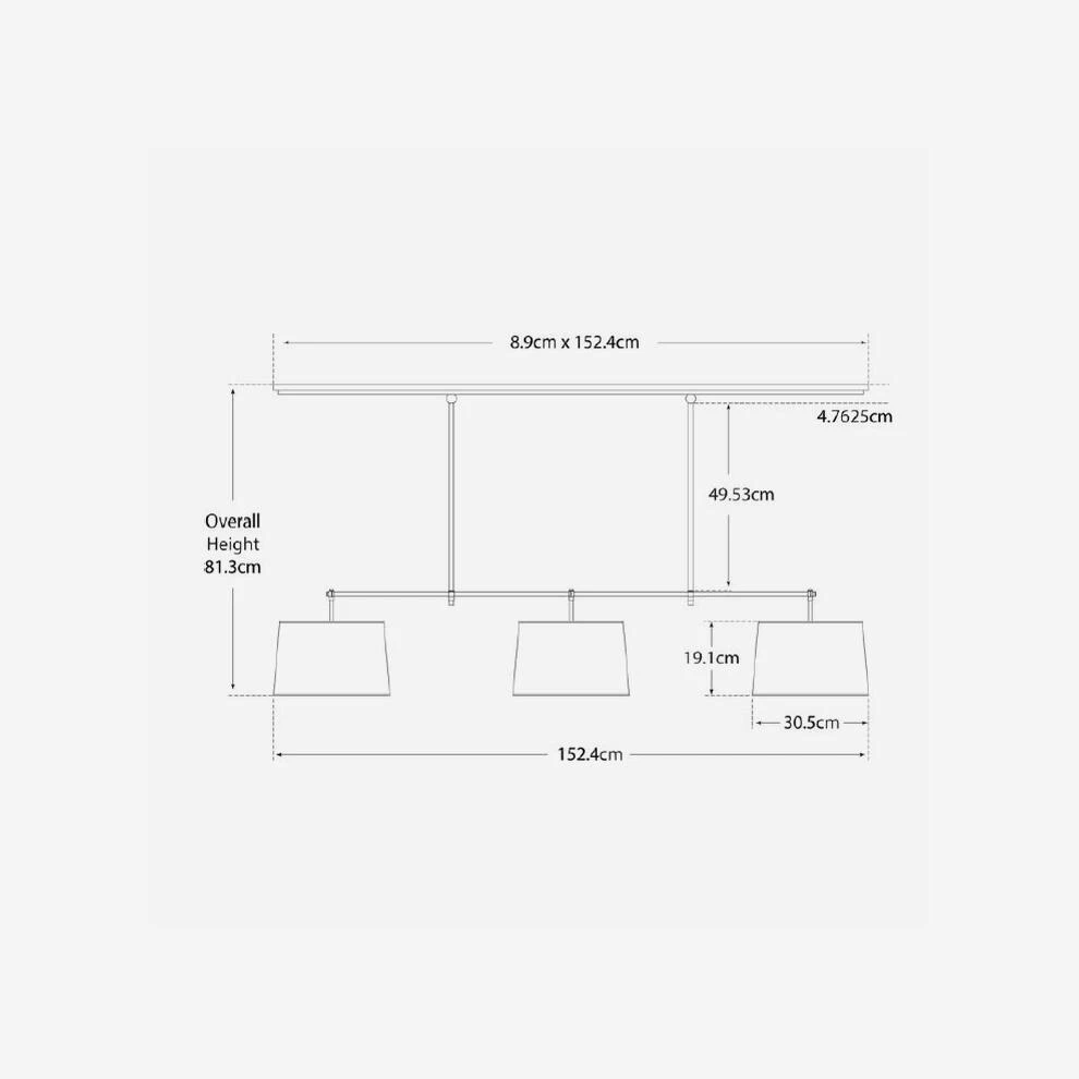 A billiard light in bronze with three cream natural linen shades