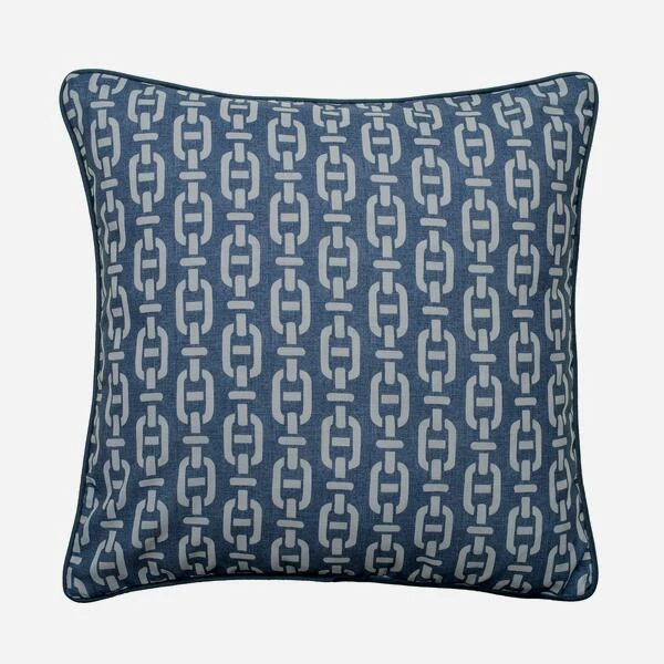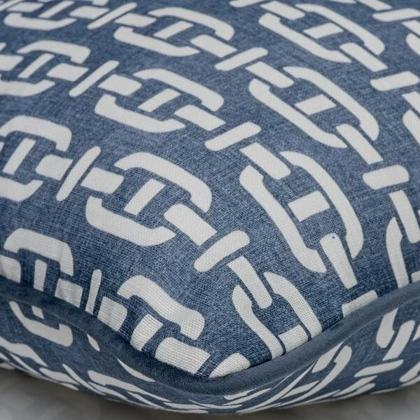 plump cushion is an outdoor version of our classic . In deep navy and white, with a chain link design print