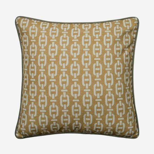 plump cushion is an outdoor version of our classic . In yellow and white, with a chain link design print