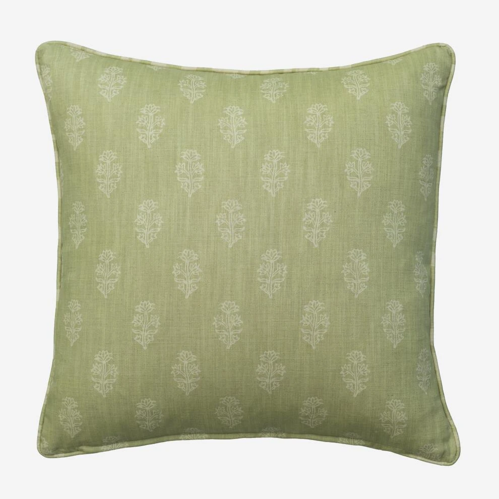 A luxurious cushion made from , a small Indian floral block print with a delicate