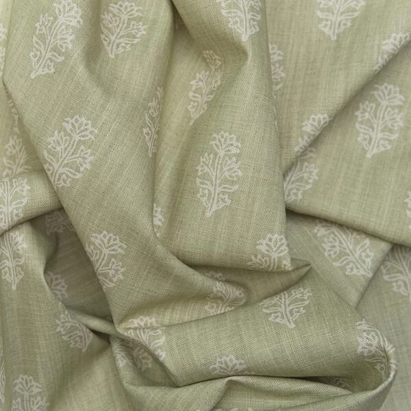 Floral block cotton print in fennel green