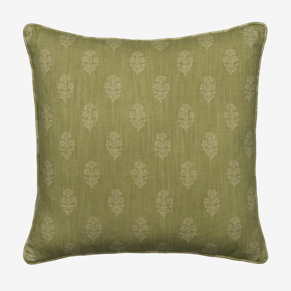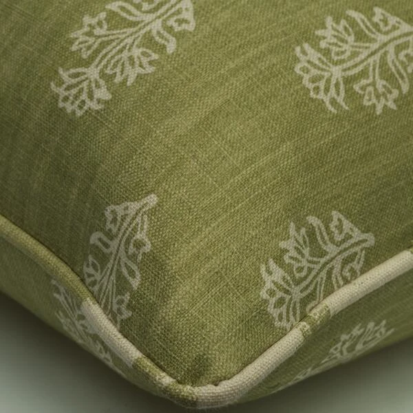 A luxurious cushion made from , a small Indian floral block print with a delicate