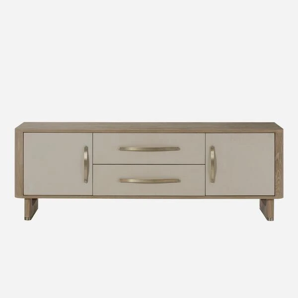 media unit evokes cool, skandi chic. Two drawers and cupboards are