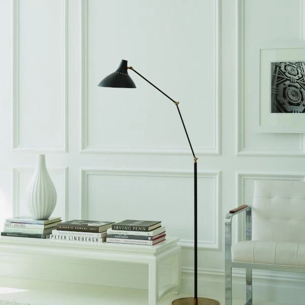 Charlton Floor Lamp, Black And Hand-Rubbed Antique Brass