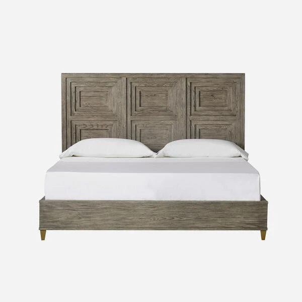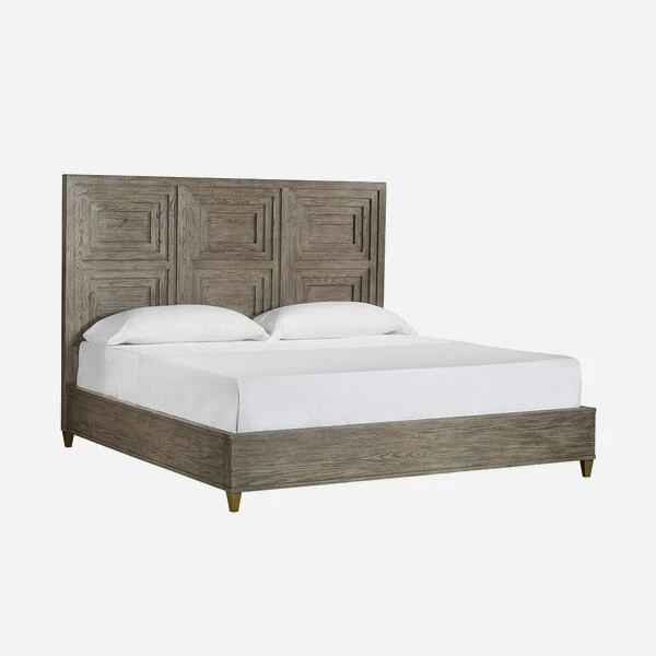 veneers, featuring an architectural layered framed bedhead that