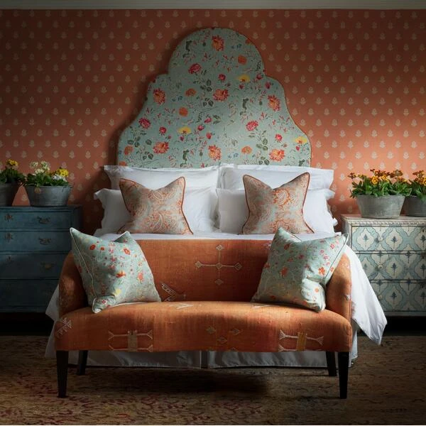Floral motif wallpaper in orange