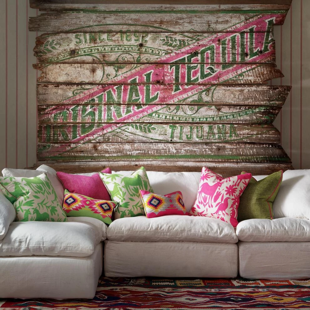 in popping pink, yellow and navy blue. Be transported to the dusty