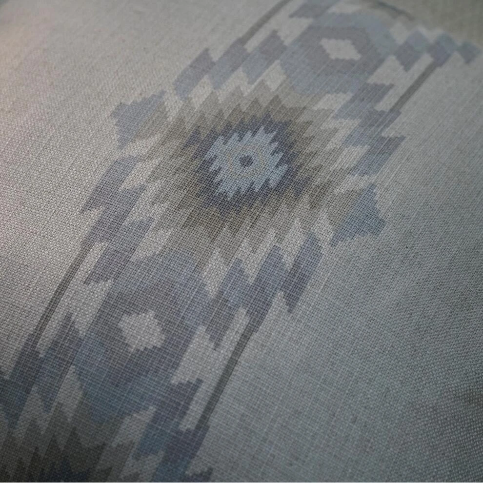 A sandy coloured fabric with a geometric, Mayan kilim pattern