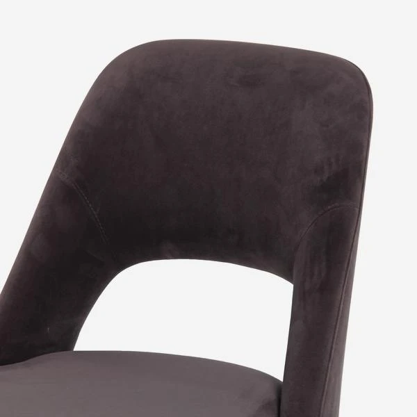 in smooth, deep mink colour velvet with slim legs in contrasting