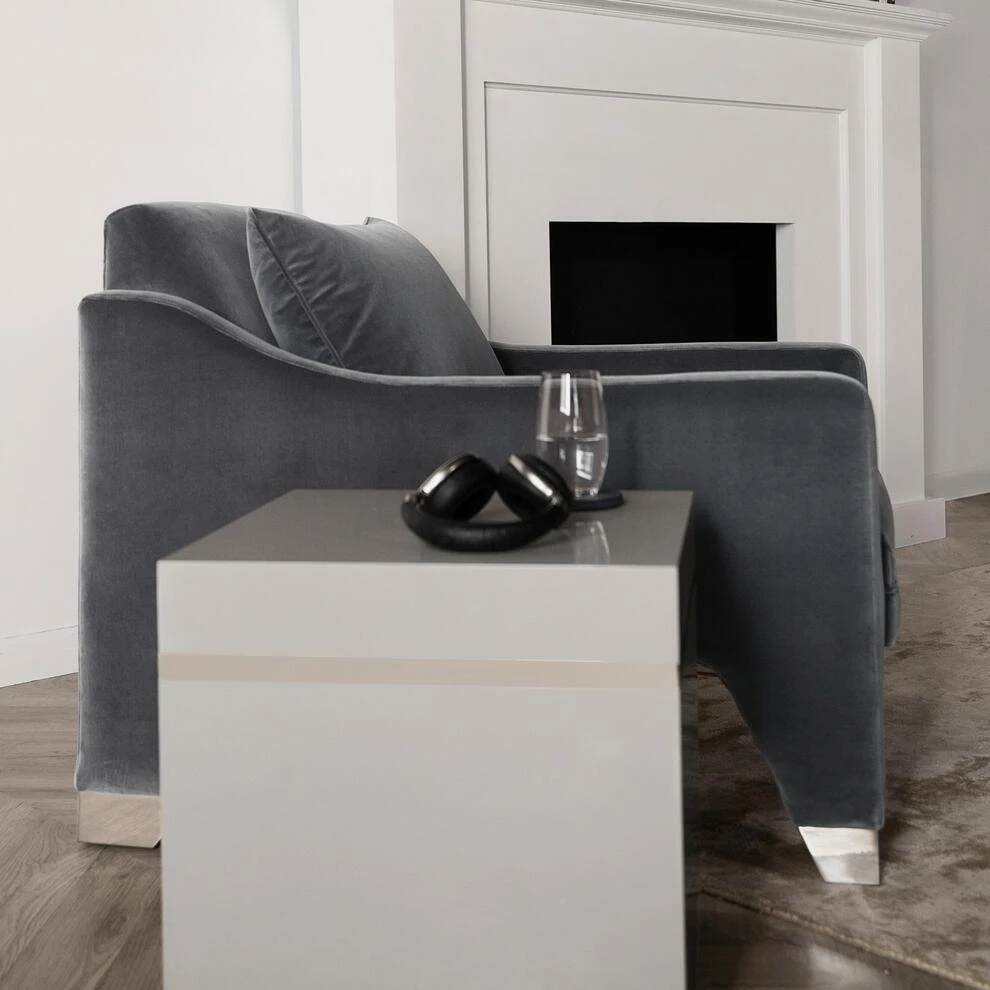 steel detailed trim. This piece is designed by Kelly Hoppen MBE and