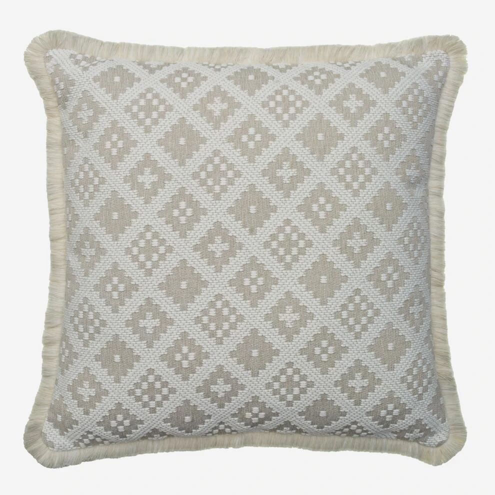 Geometric outdoor cushion in neutral tones