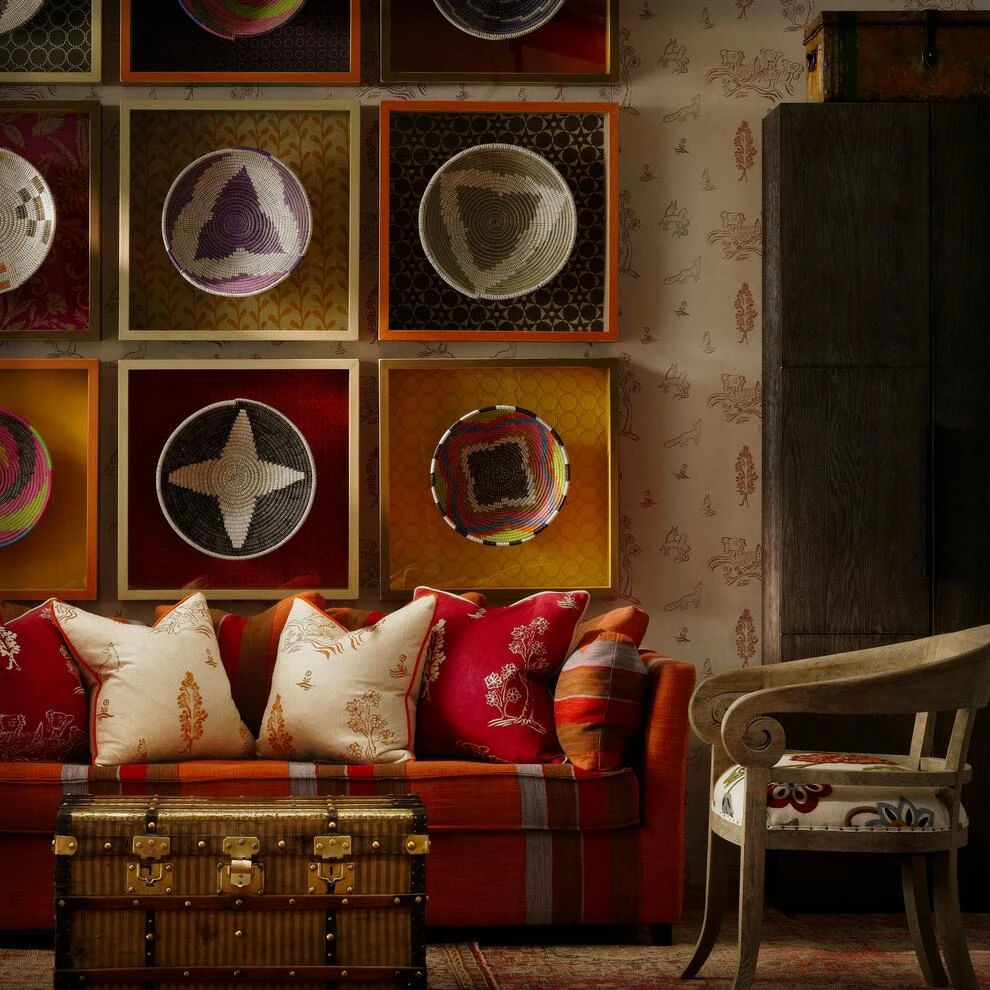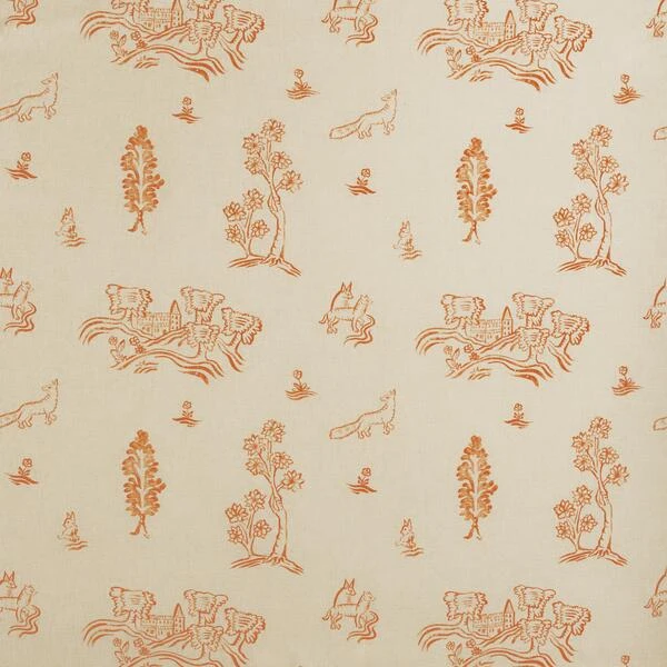 a vibrant orange motif. A linen blend fabric, great for upholstery,