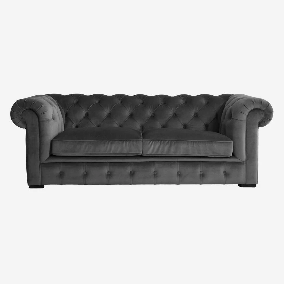 A faithful recreation of a classic Chesterfield sofa. Soft grey