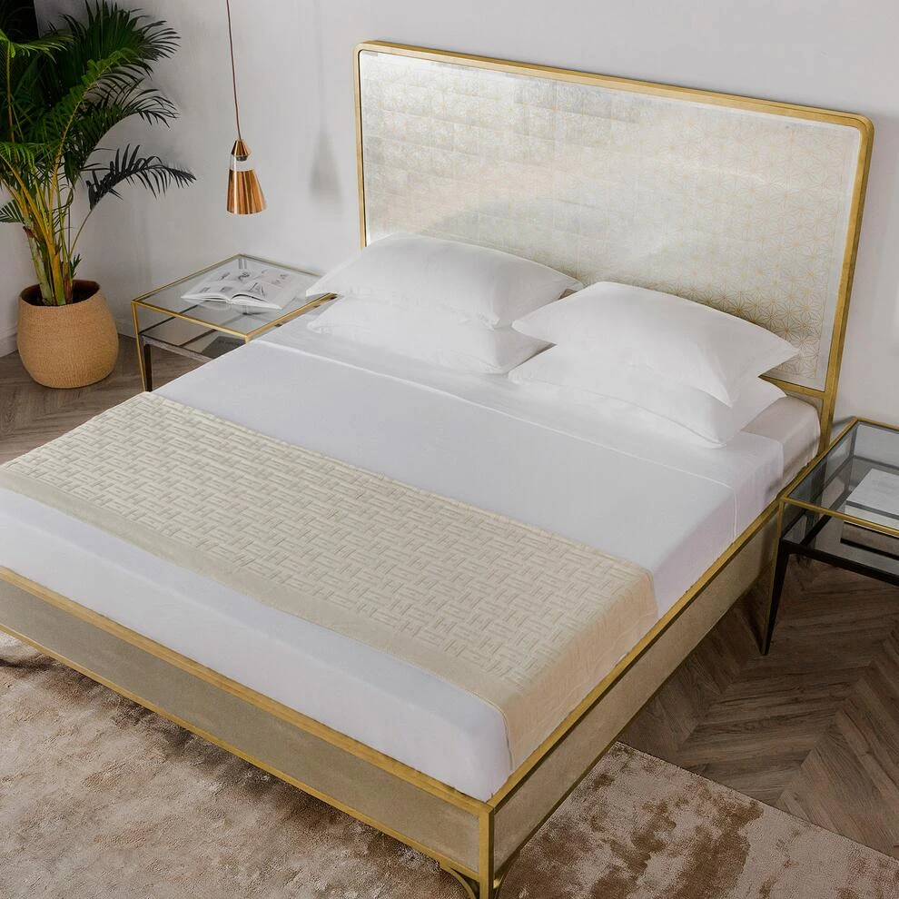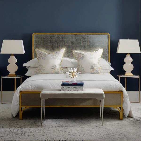 This solid wood UK king size bed frame with opulent gold leaf