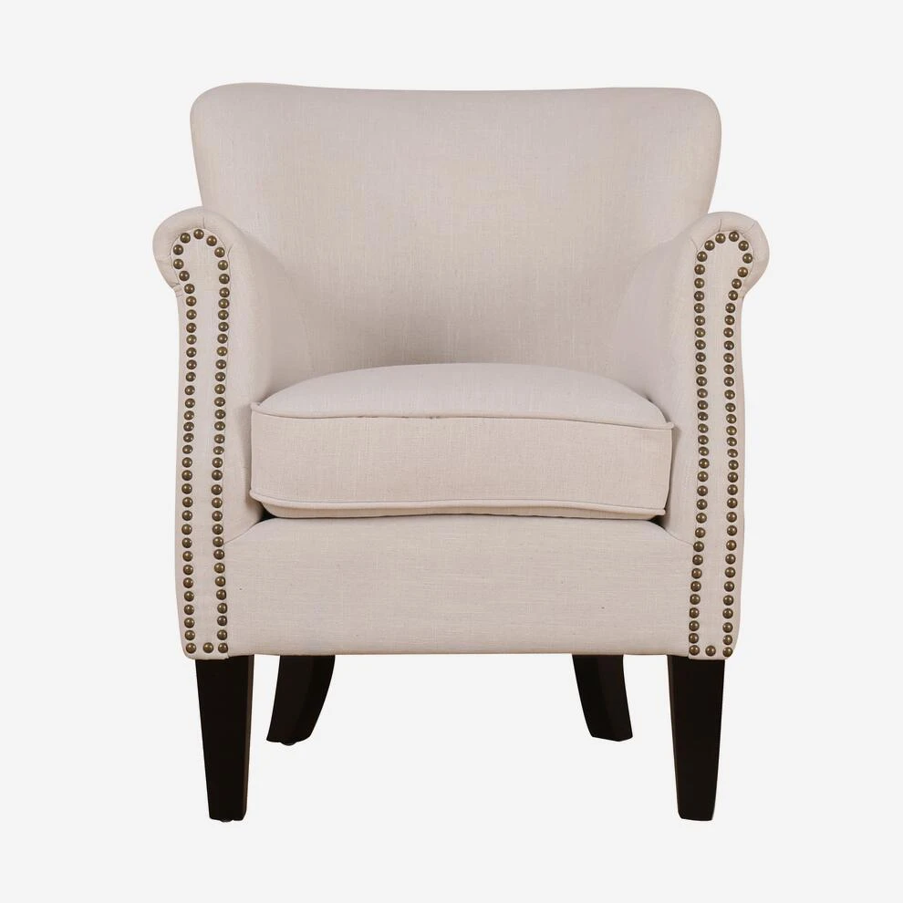 Small upholstered cream armchair with stud detail