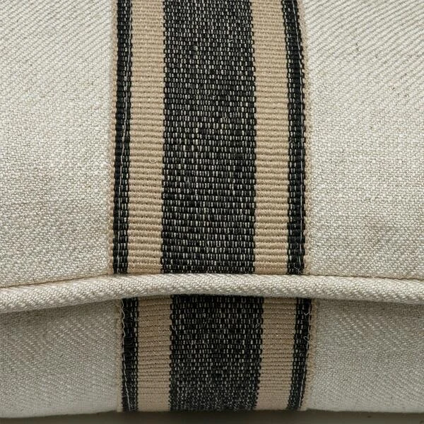 Linen cushion with a grey and off white medal stripe