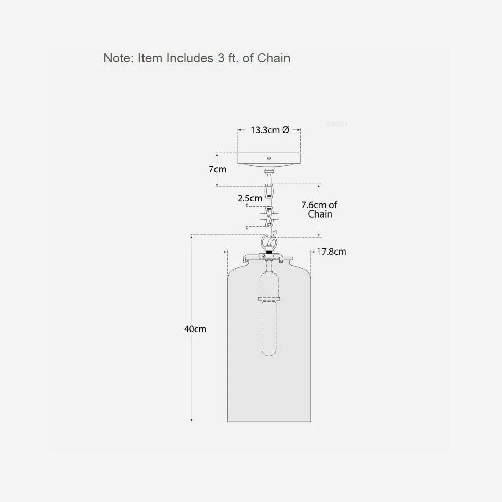 A pendant light with an antique brass chain and fixings and a