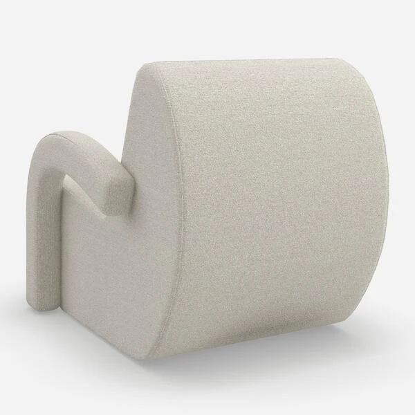 Curved accent chair in off-white bouclé by Kelly Hoppen
