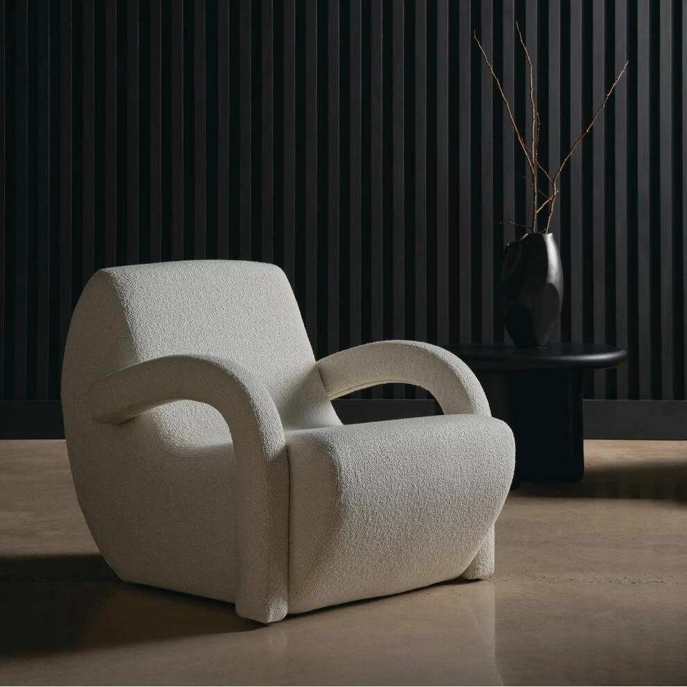 softly textured bouclé fabric for a look that invites calm and