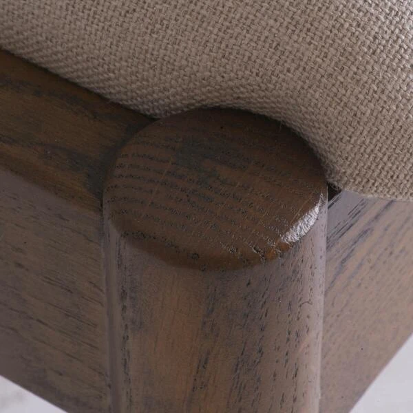 wood frame with a back and seat upholstered in creamy, natural