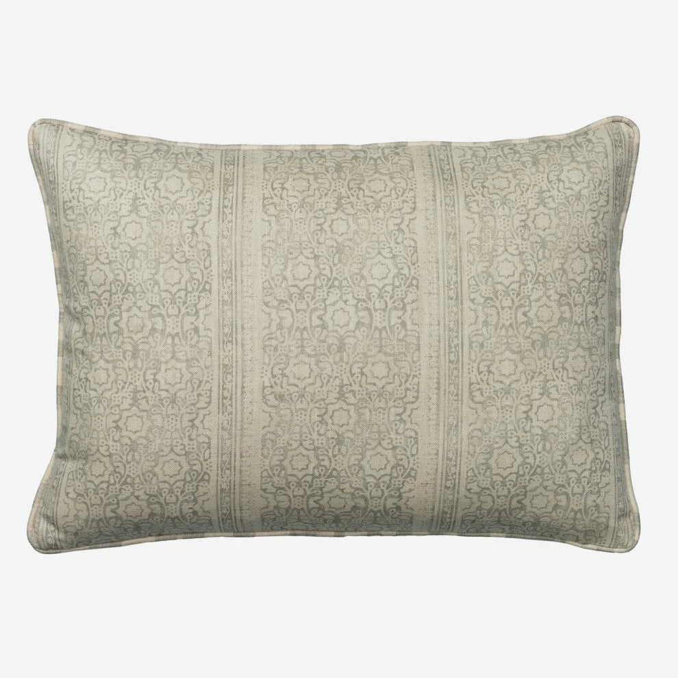 A luxurious cushion made from , a batik inspired block stripe print that has subtle