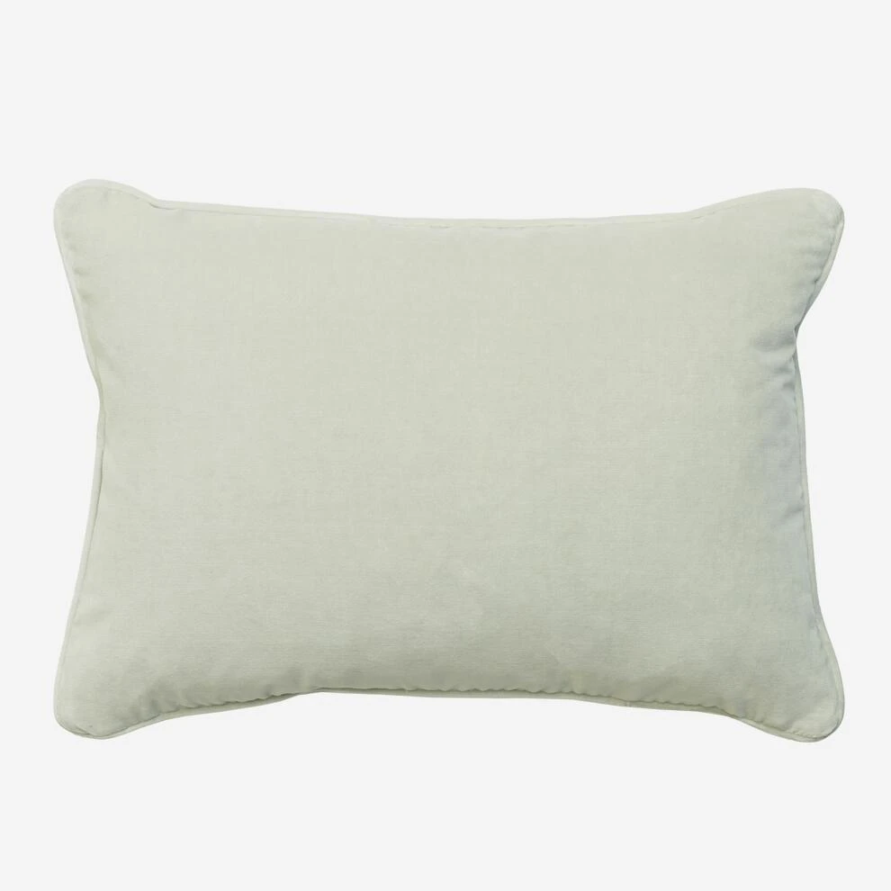 A luxurious, super soft velvet rectangular cushion in grey-blue