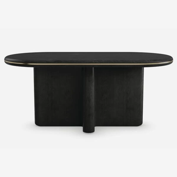 Oval dining table in dark basalt finish by Kelly Hoppen