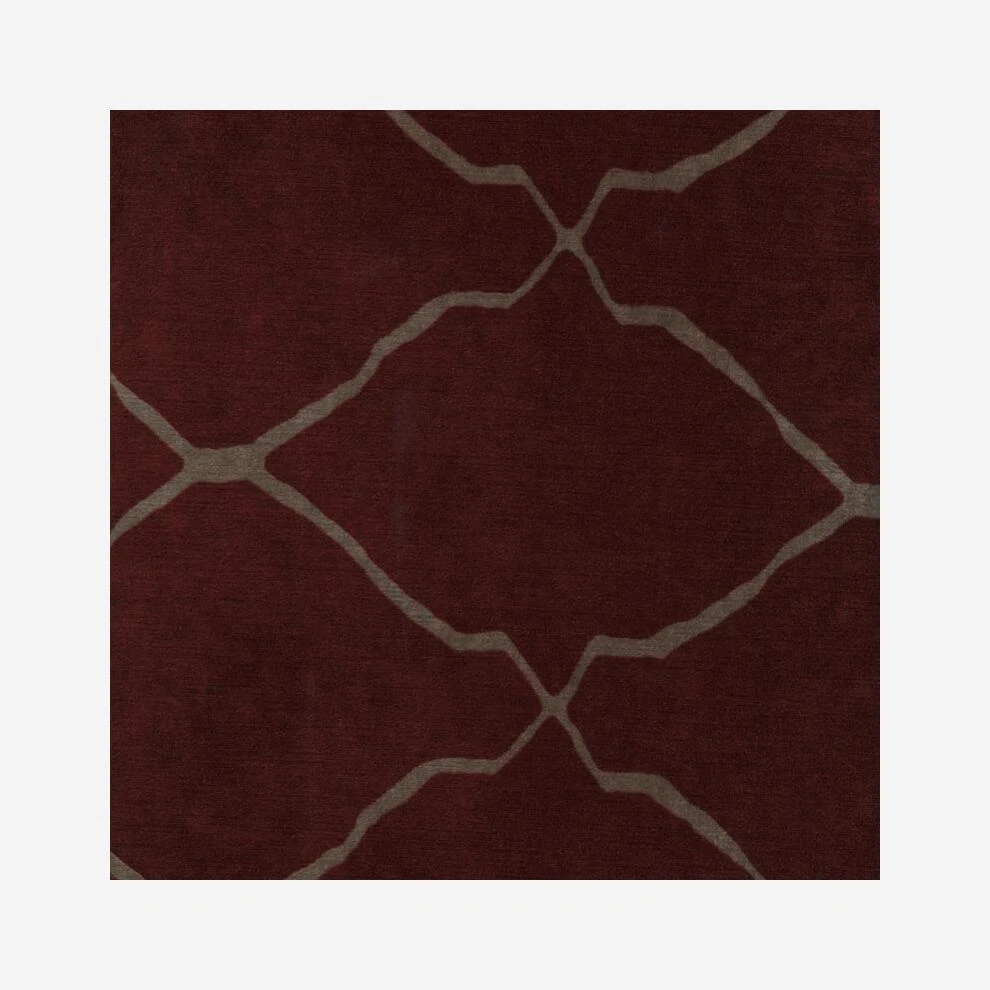 An elegant, thin trellis design in beige on regal red velvet for