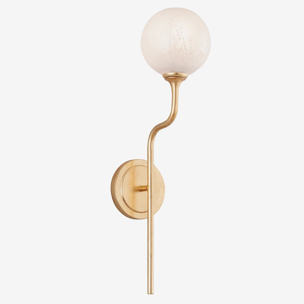A single globe of opal cloud glass rests on a raised curved arm