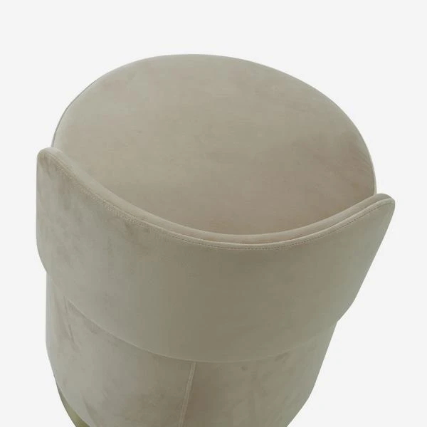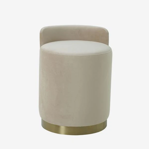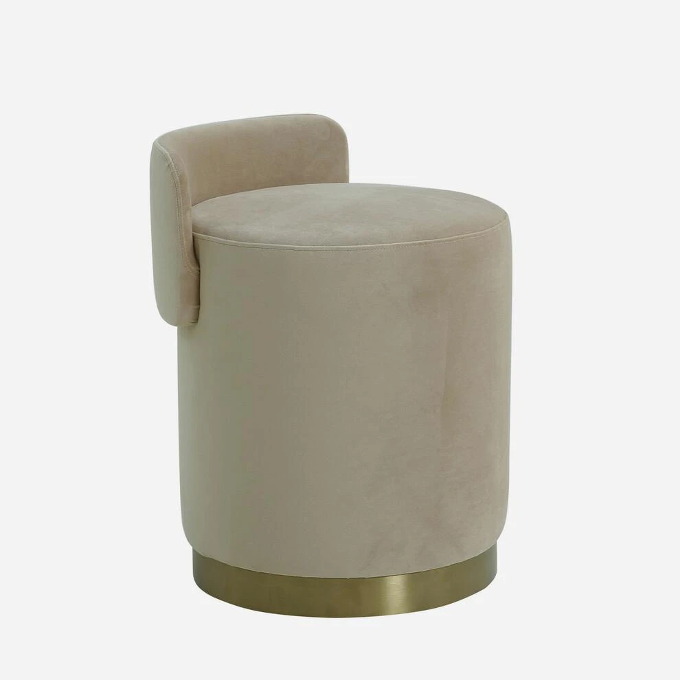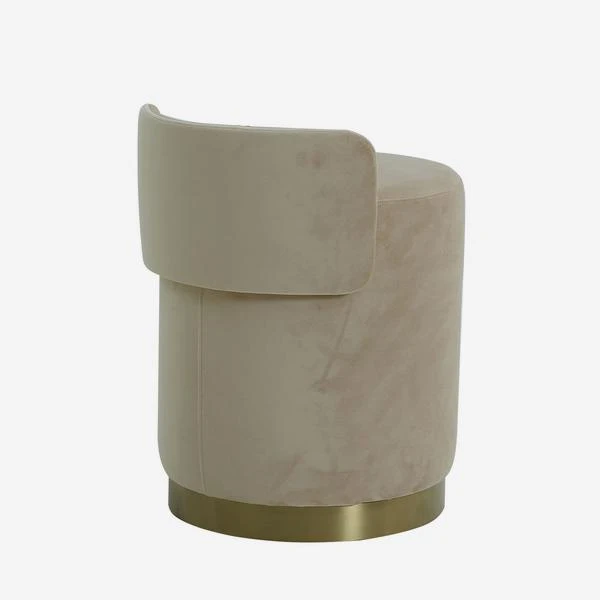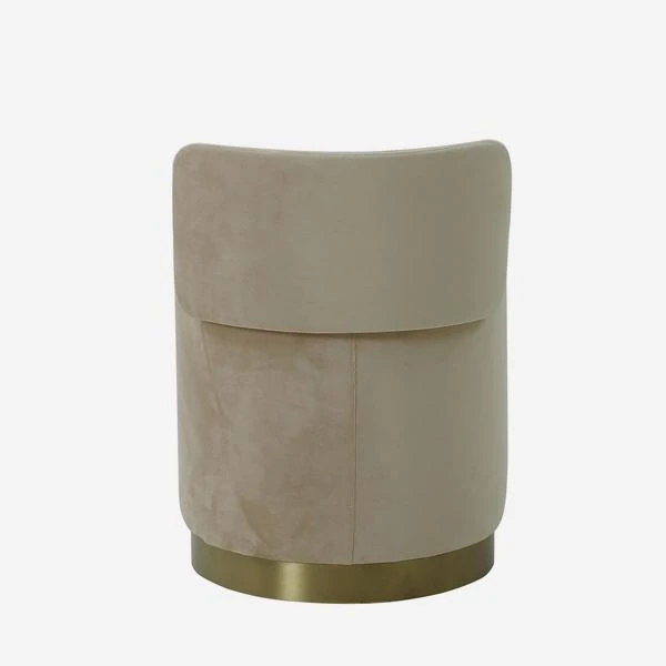soft taupe velvet upholstery, highlighted by a brushed gold effect