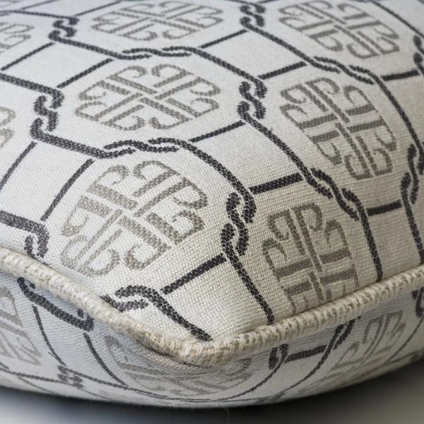together with a linear pattern. In cool grey tones this piece