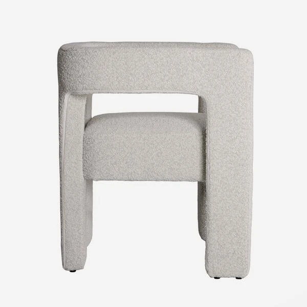 off-white bouclé fabric, this chair lends itself as a larger dining