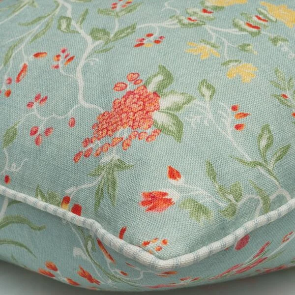 Floral linen cushion in duck egg blue
