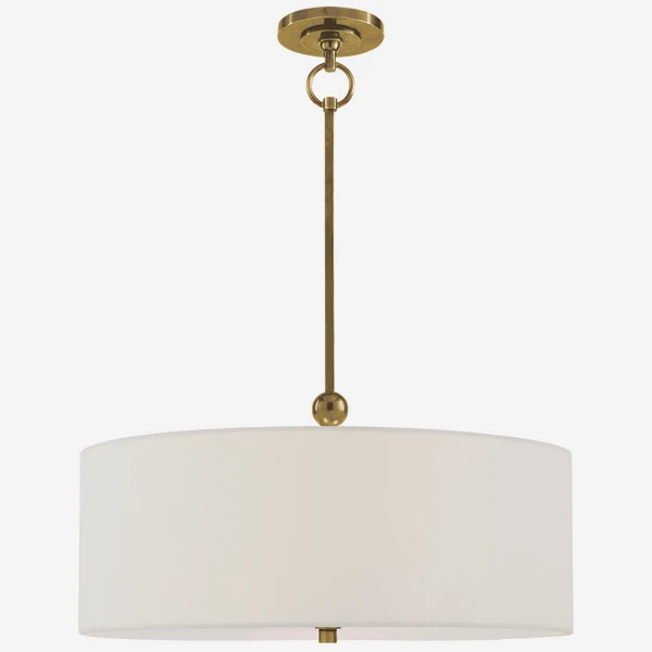Reed hanging shade in brass with linen shade