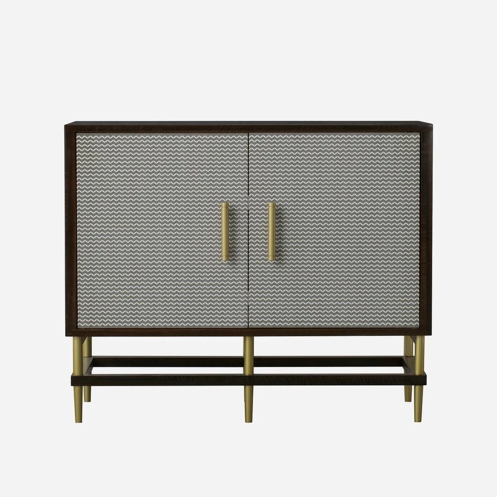 A quirky cherry veneer sideboard with herringbone printed double