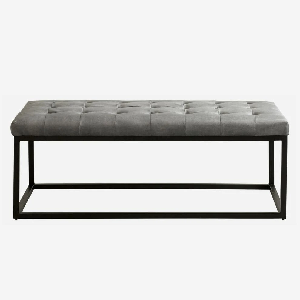Padded velvet ottoman bench in grey
