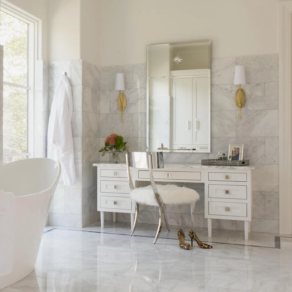 sense of relaxed sophistication. Curving metal arms extend from the