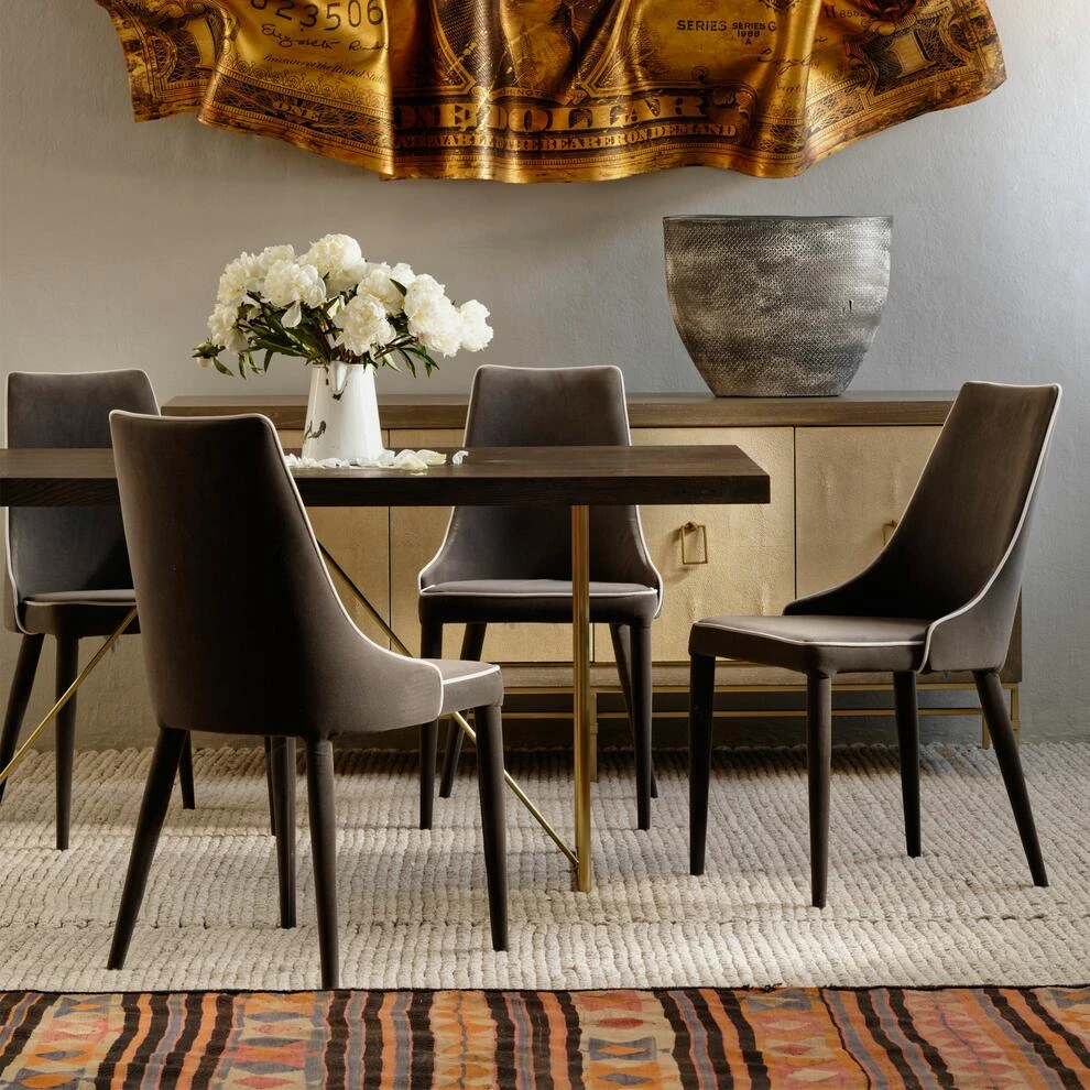 Smart contemporary dining chair in grey velvet