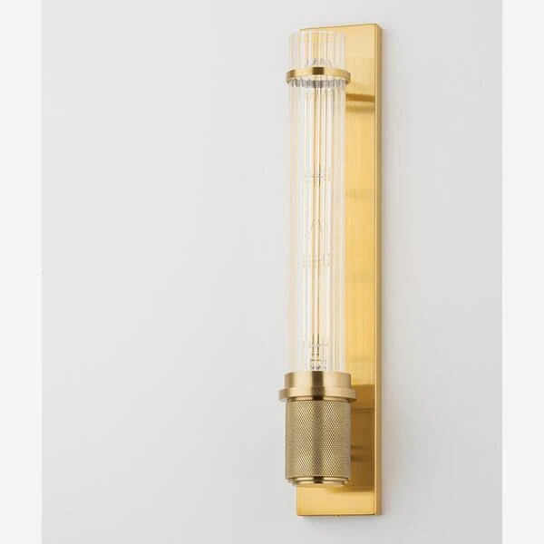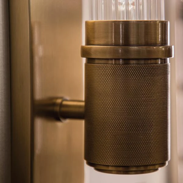 brass. A tubular LED bulb spreads a warm glow through this tactile