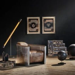 invitation to comfort. Its short arms and elegant brass-tipped legs