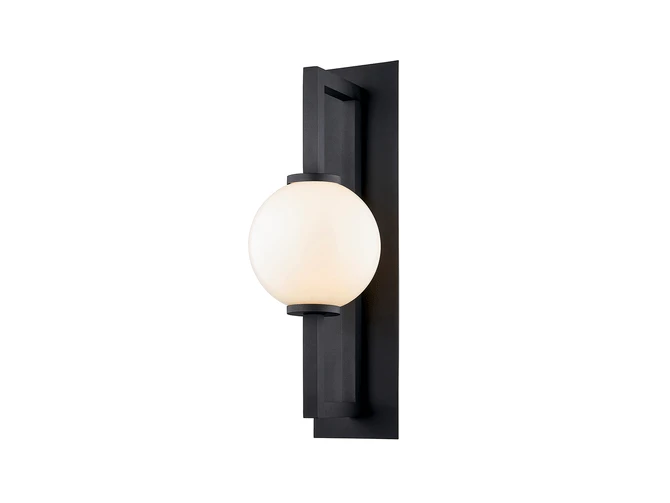 metal arms finished in textured black. The globe houses a single