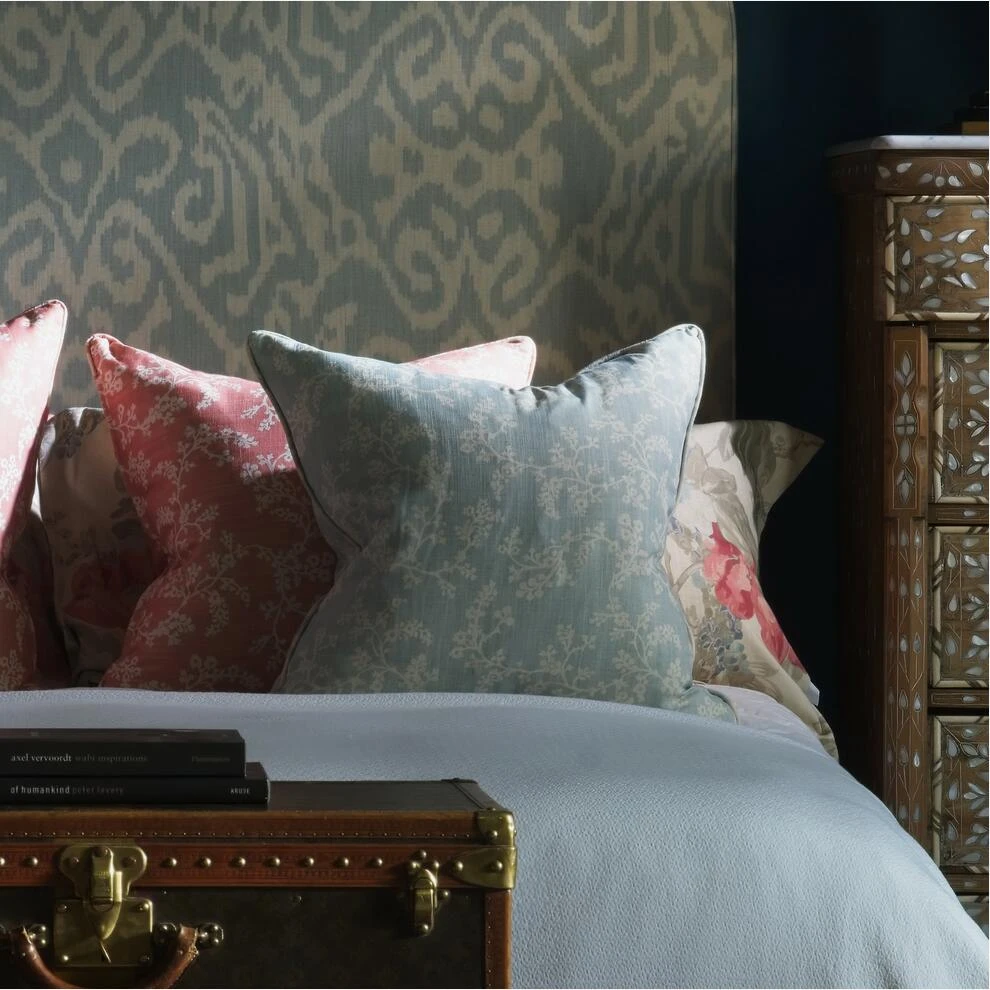 A luxurious cushion made from , a sprawling English vine floral print reminiscent of the