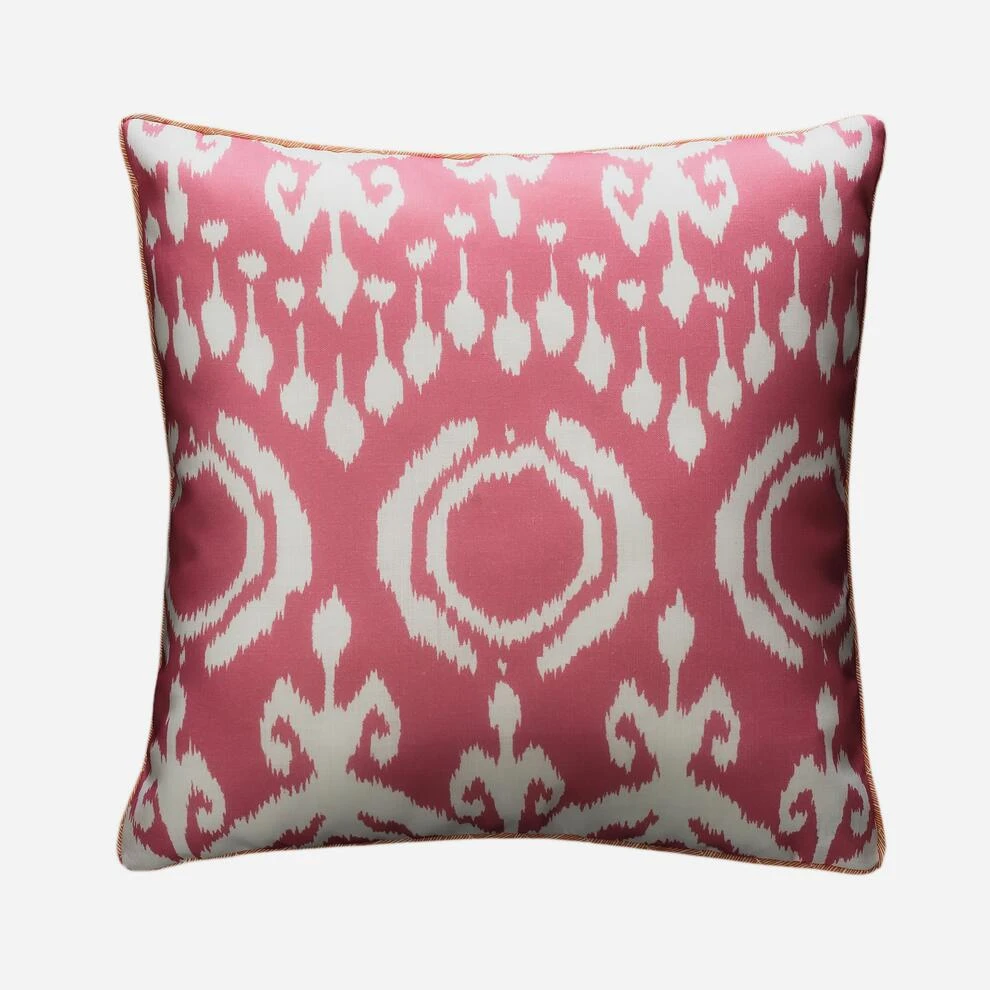 by the traditional ikat prints of Indonesia. In vibrant hot pink